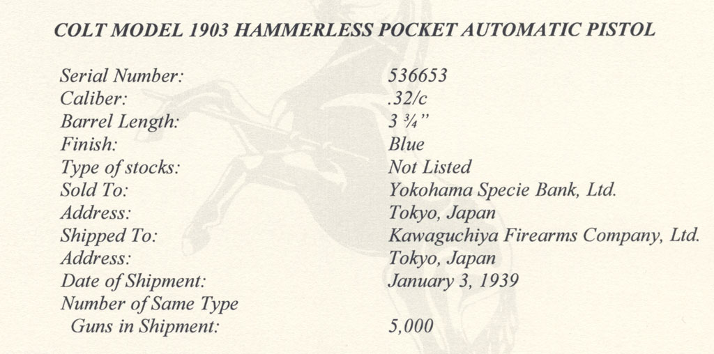 Tokyo, Japan and shipped to Kawaguchiya Firearms Company,